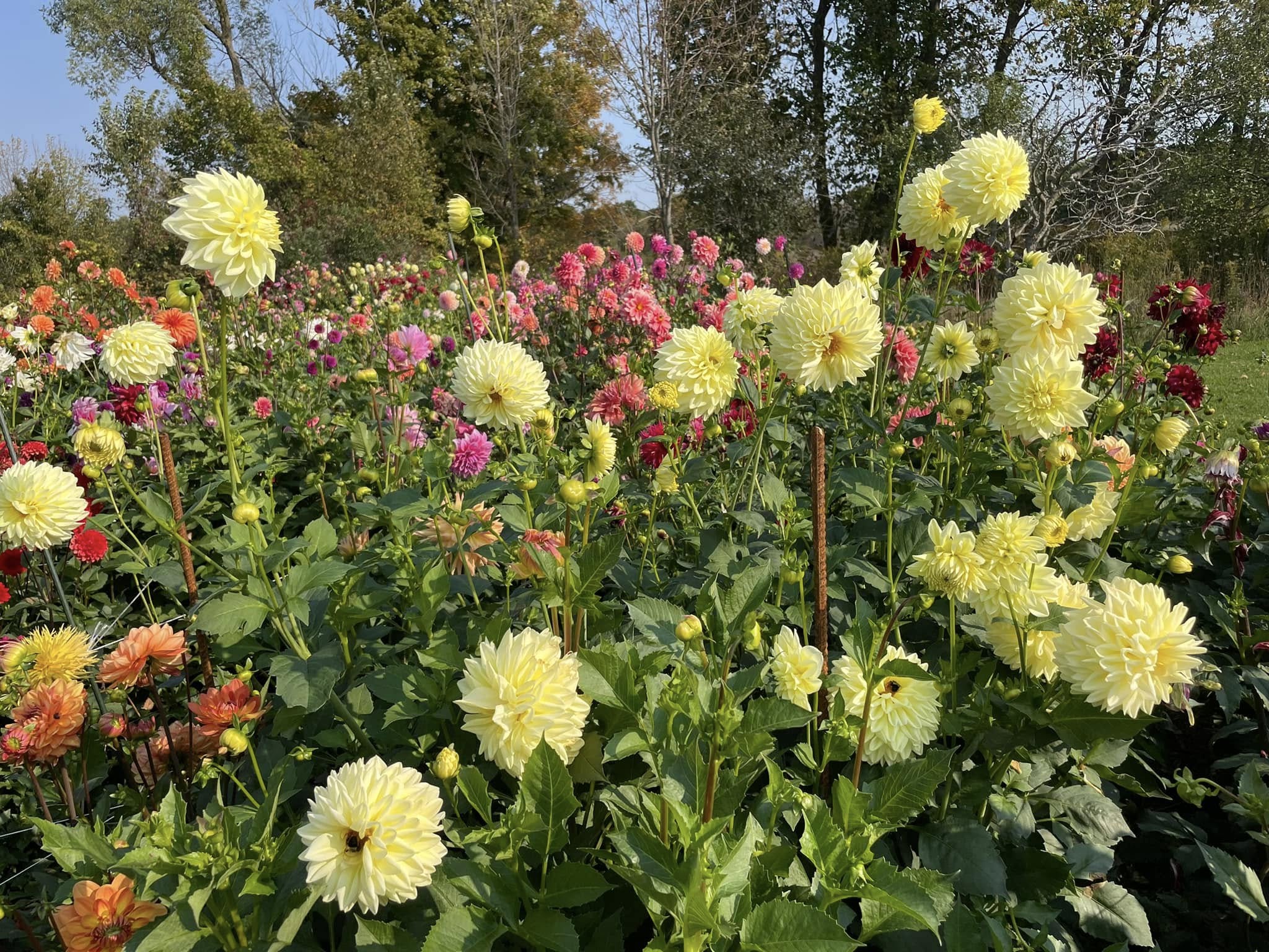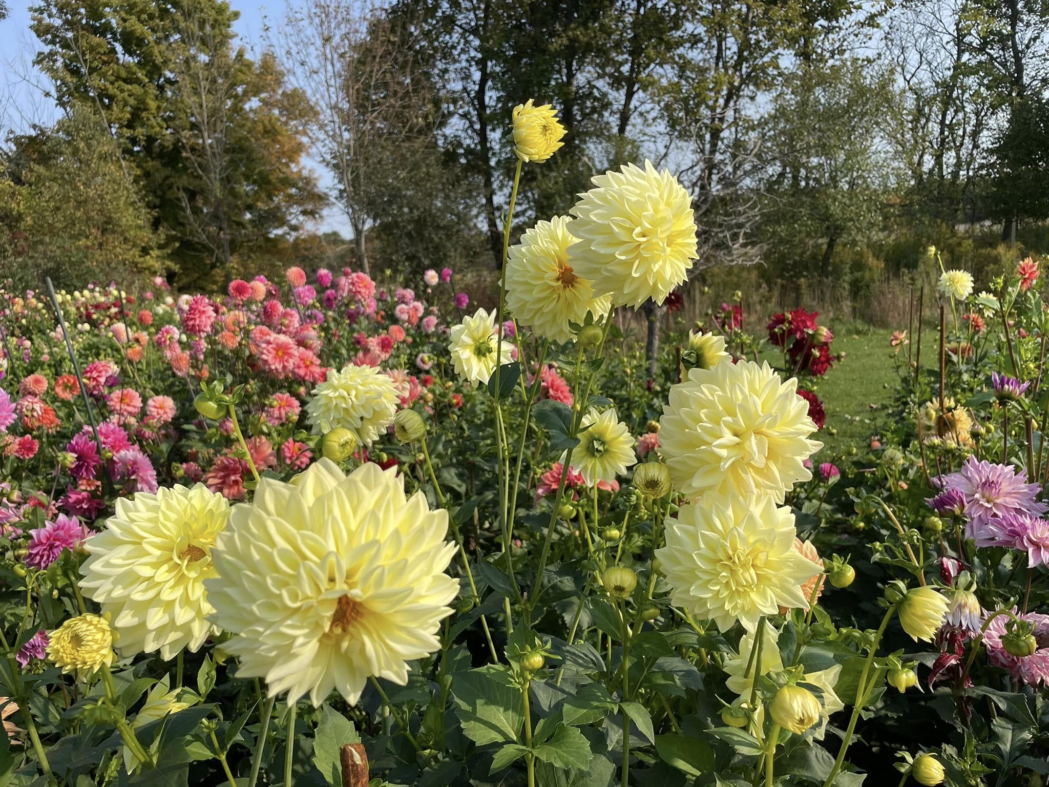 These beautiful formal decorative dahlias in soft yellow borne atop tall strong stems are floriferous bloomers. Soft butter color with a touch of white brushed on petals, this cultivar is an amazing cut flower. Early bloomer and great performer both in flower and tuber production.