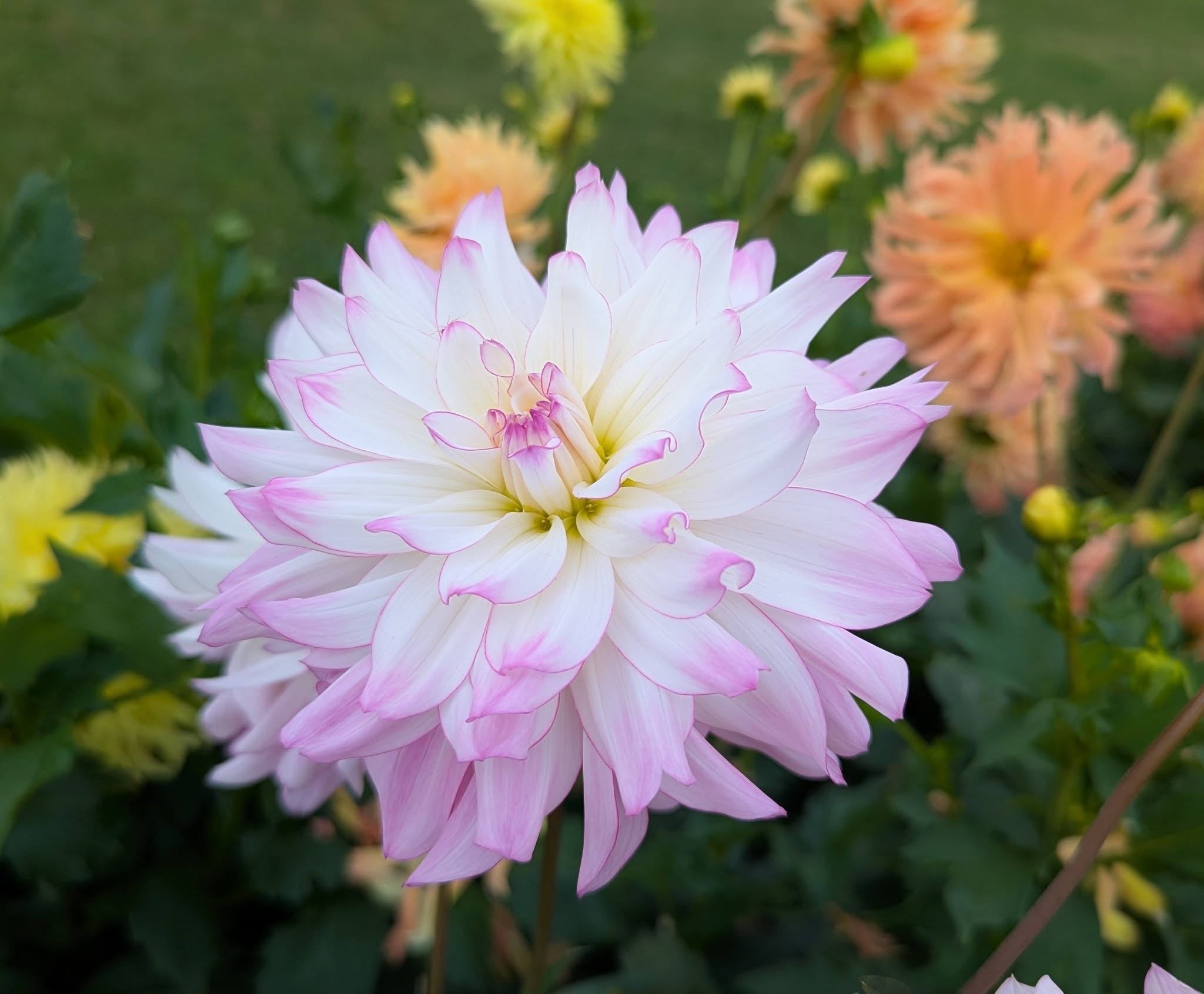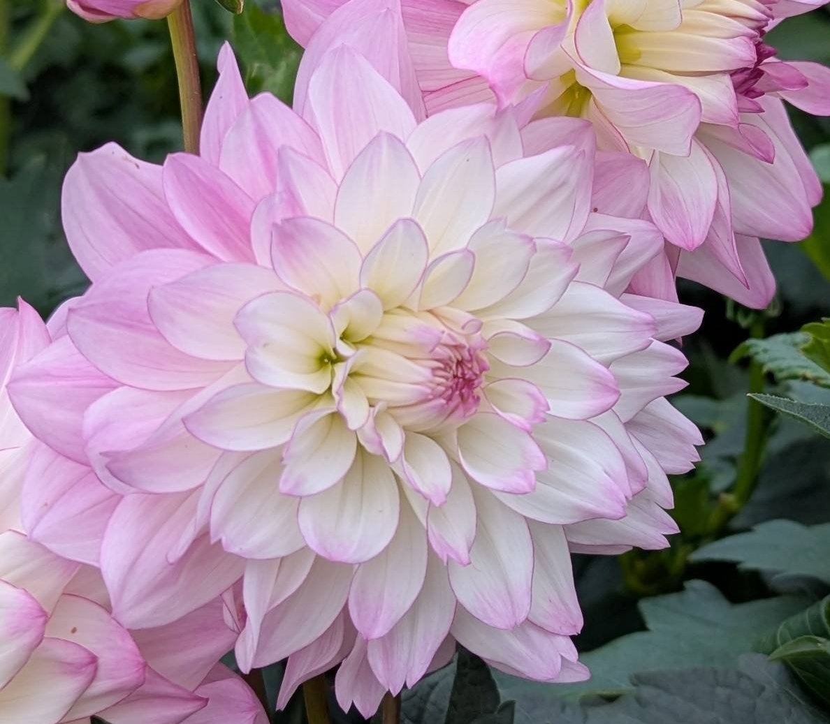 Beautiful CB Tanya in white and lavender hues with an exquisite picotee on the laciniated petals. A prolific bloomer and a vigorous grower.