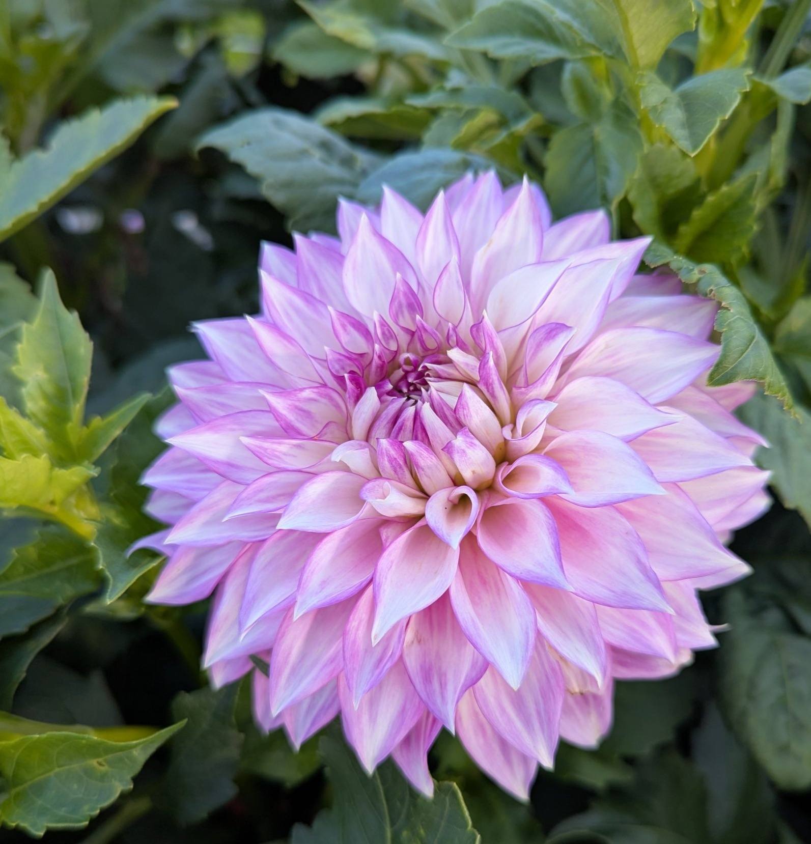 Clearview Debbie is one of my most favorite dahlias of them all! Plants are loaded with soft lavender-white blooms edged in a dark lining of pink-purple. There are exquisite color variations in the blooms; more white, less lavender, and streaks of purple, adding uniqueness to each bloom. These blooms with pointed and reflexed petals and a luxurious texture, accentuated by darker petal edgings, are a true nature's masterpiece. A stunning addition in the landscape or bouquets!