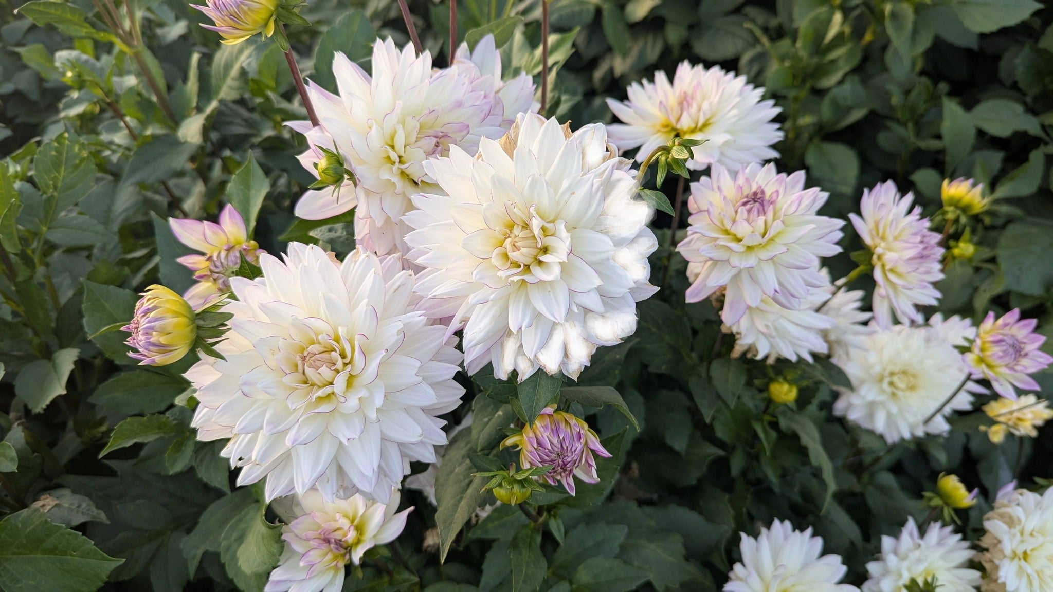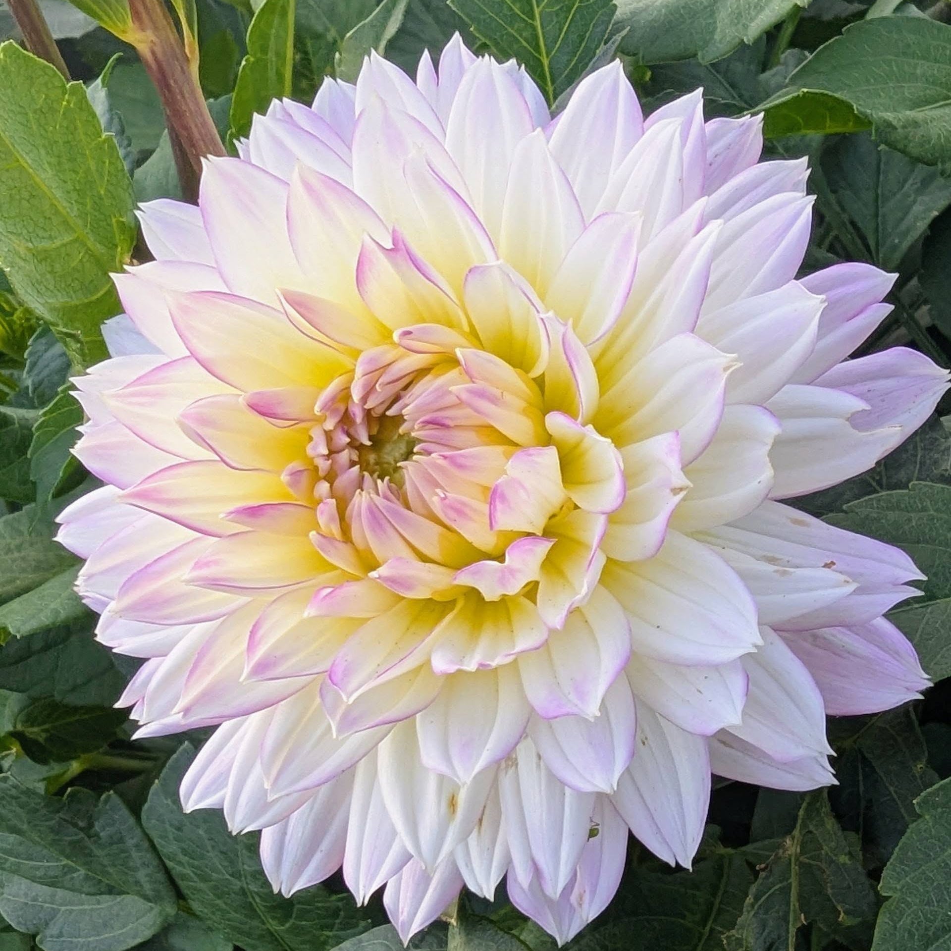 A graceful bloom with white split petals, edged with lavender, and a creamy white center. A highly prolific bloomer, aptly named for its beauty and energy that it creates! Growing on medium sized plants Crazy Love will surely claim a place in your heart!
